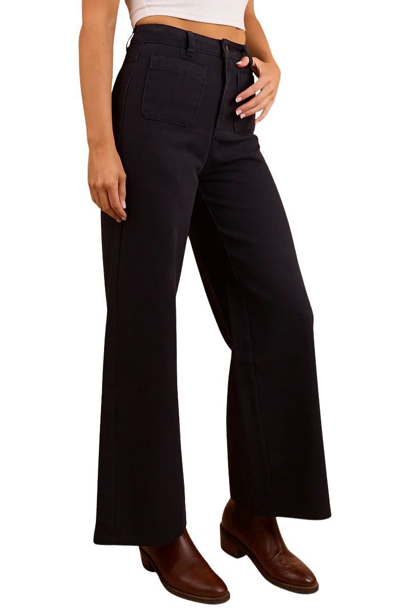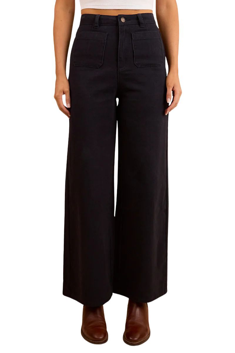The Milani Women's Wide Leg Pant has been created from 100% cotton twill, this fabric is known for its soft and breathable nature whilst being a durable option. The high waisted design is fitted at the hips before gently falling into a wider cut - a style that flatters the waist and legs. The Milani's can be paired with casual basics for day time outings or dressed up for a polished and contemporary look. Front patch pockets and Ringers Western branded buttons add the finishing touches to this elegant wardrobe staple.