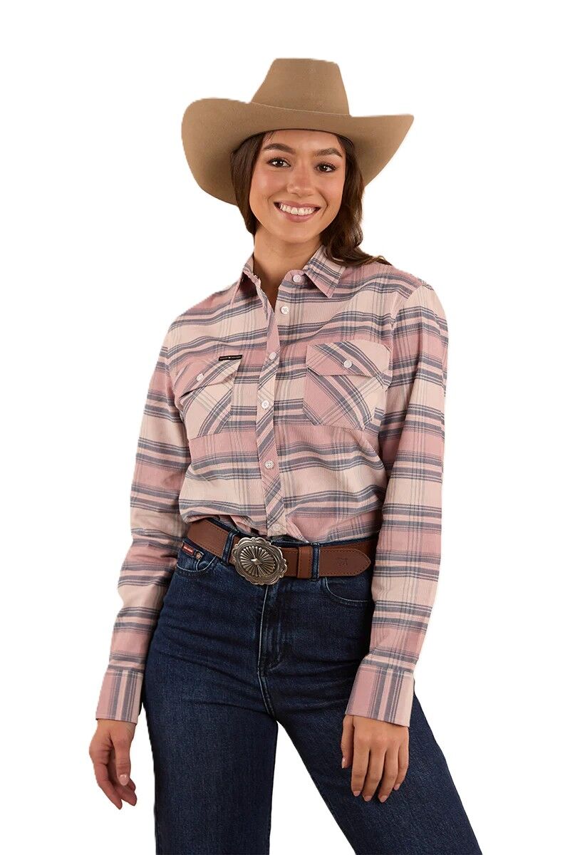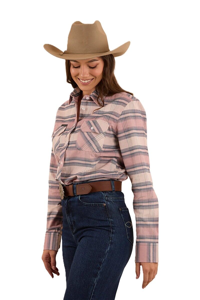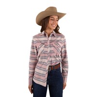 Ringers Western Womens Millicent Full Button L/S Flannel Shirt (224015RW) Rosey Pink 10