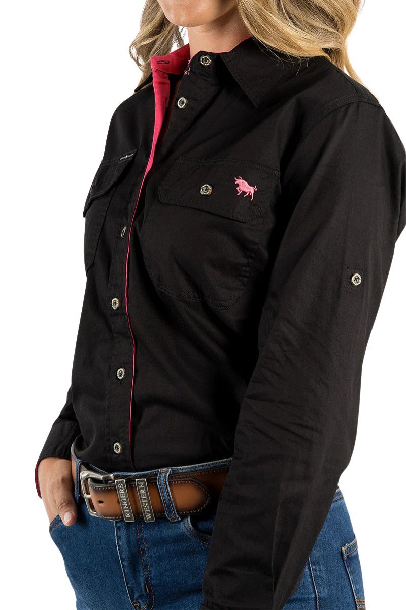 Ringers Western Womens Pentecost River Full Button L/S Work Shirt (171210001) Black 12