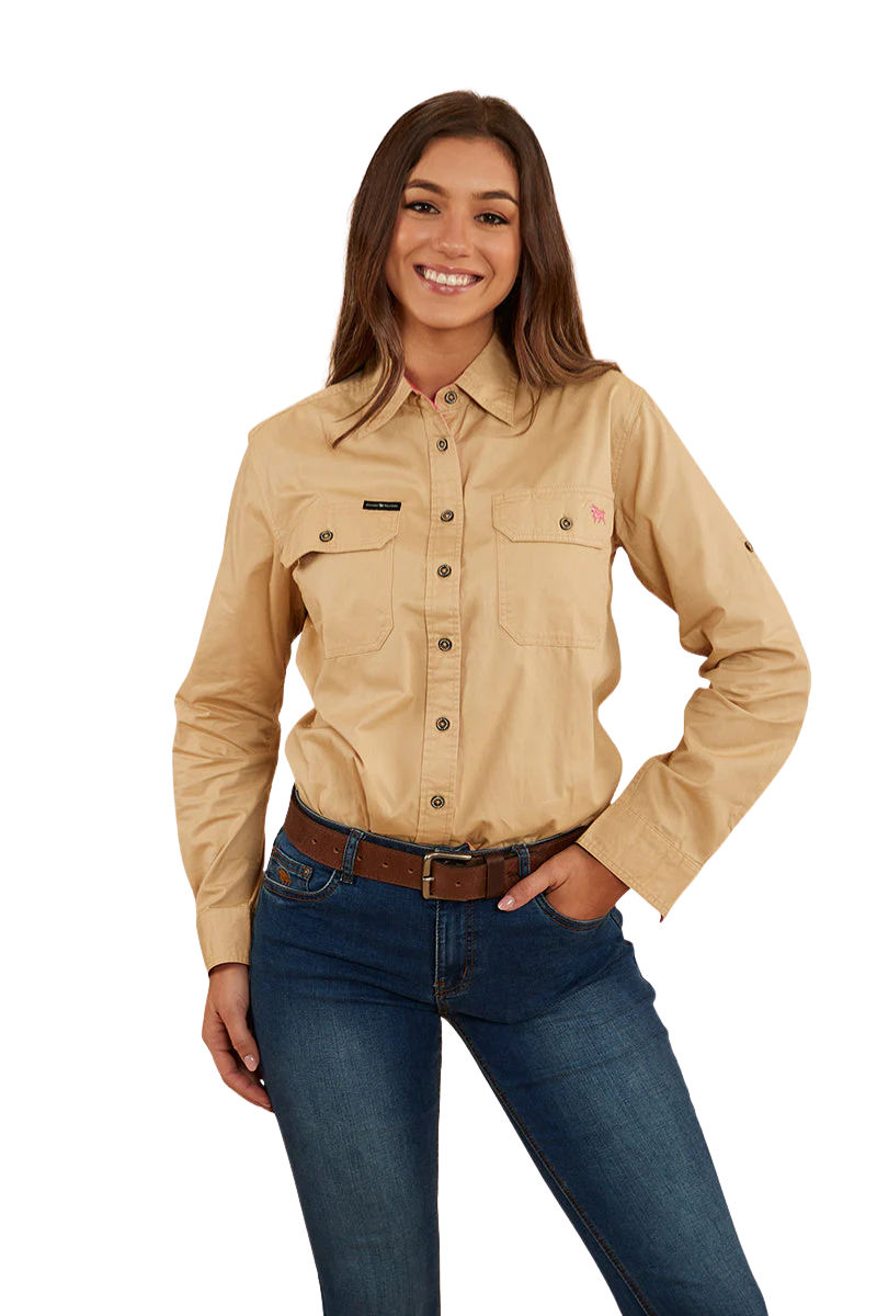 Ringers Western Womens Pentecost River Full Button L/S Work Shirt (171210001) Dark Sand/Melon [SD]
