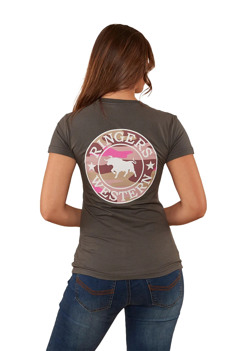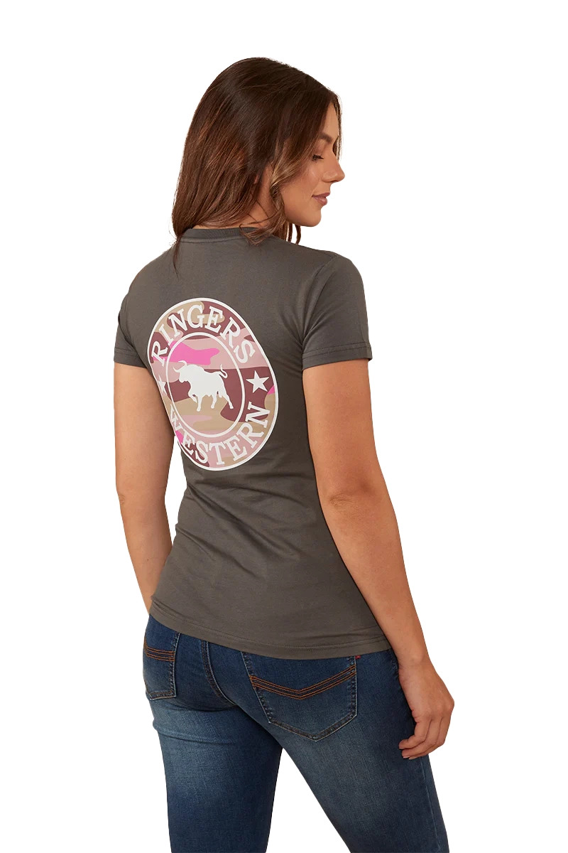 Ringers Western Womens Signature Bull Classic Fit Tee (220016RW) Vintage Black/Pink Camo 6