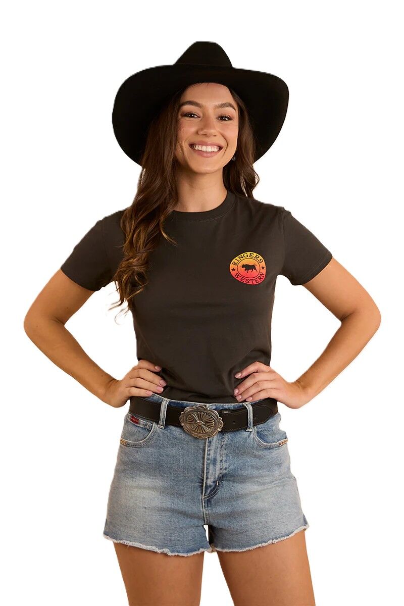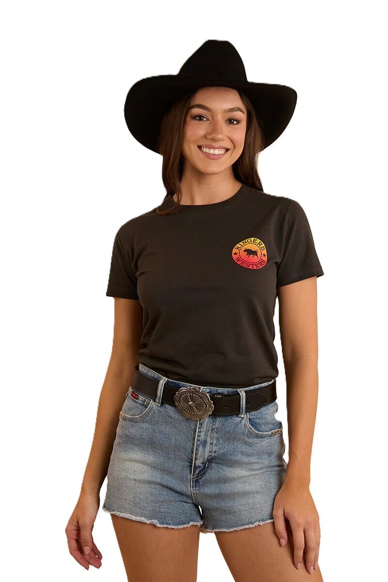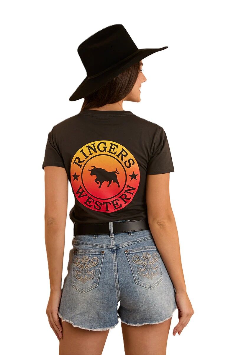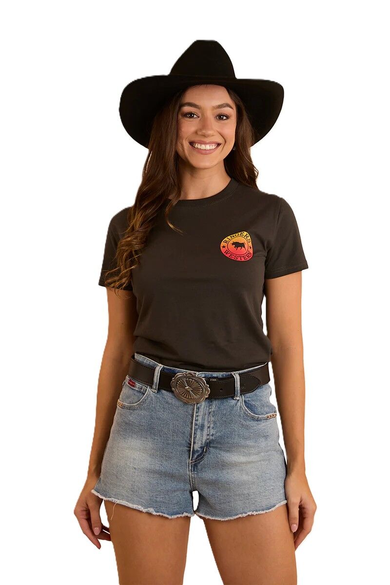 Ringers Western Womens Signature Bull Classic S/S Tee (220016RW) Charcoal Fade 16 [SD]