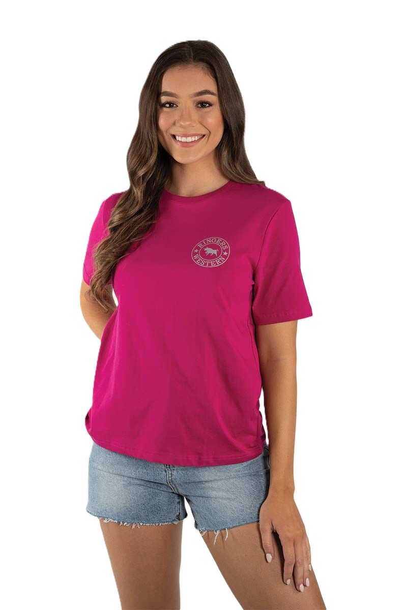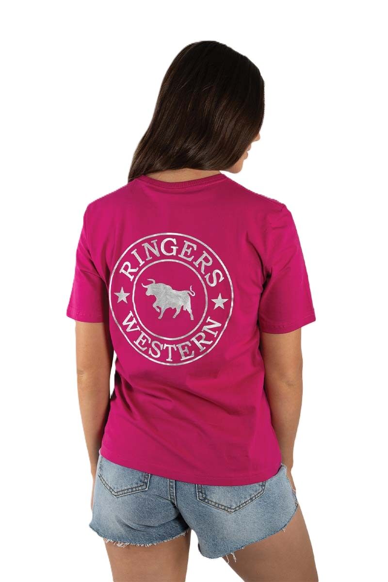 Ringers Western Womens Signature Bull Loose S/S Tee (220018RW) Magenta with Silver Print 6