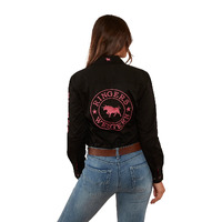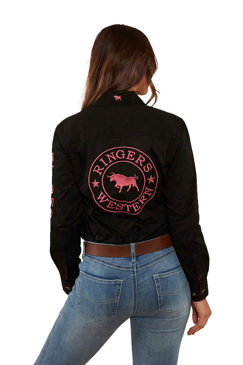 Ringers Western Womens Signature Jillaroo Full Button Work Shirt (218110002) Black/Melon Embroidery 6