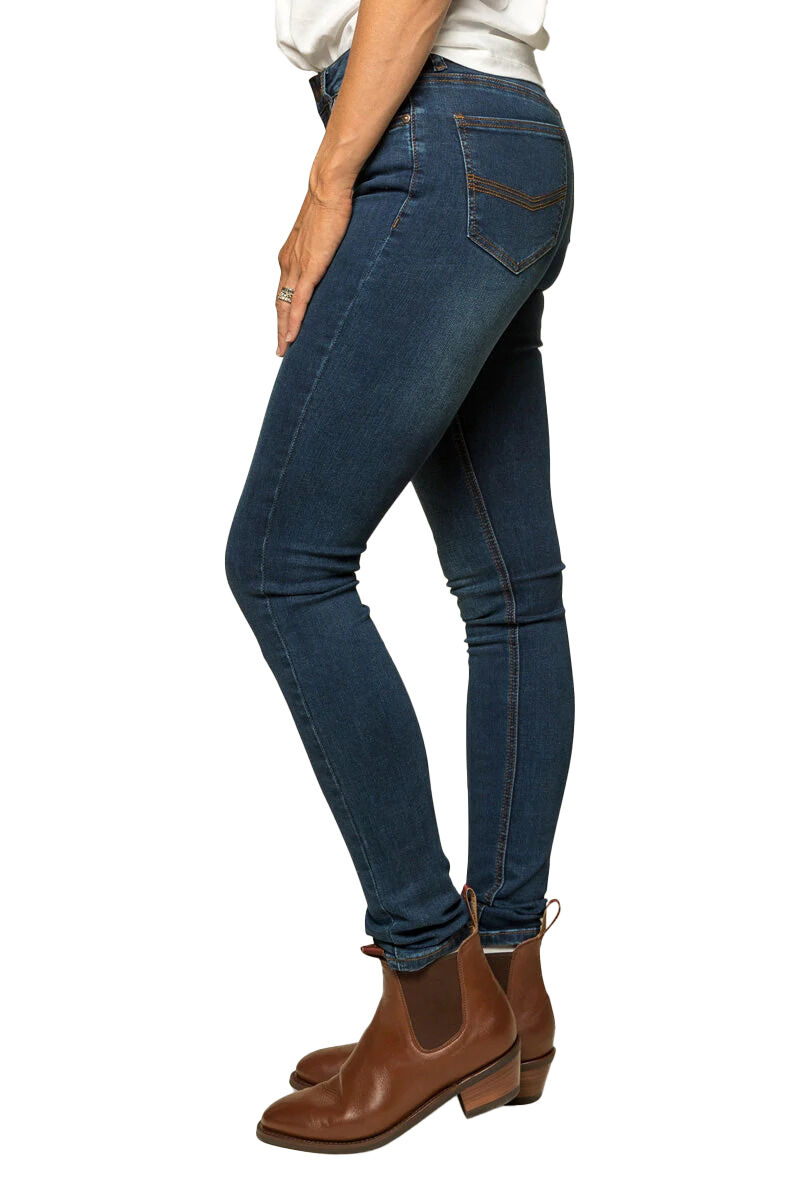 The quality, stretch fabric in the Sophie skinny leg jean will flatter a range of body types. These classic blue jeans will serve you well out riding with a Ringers Workshirt, or give you a sleek and stylish edge worn with a shirt and high heels.