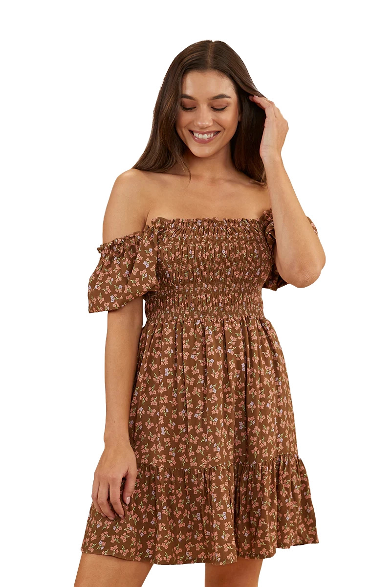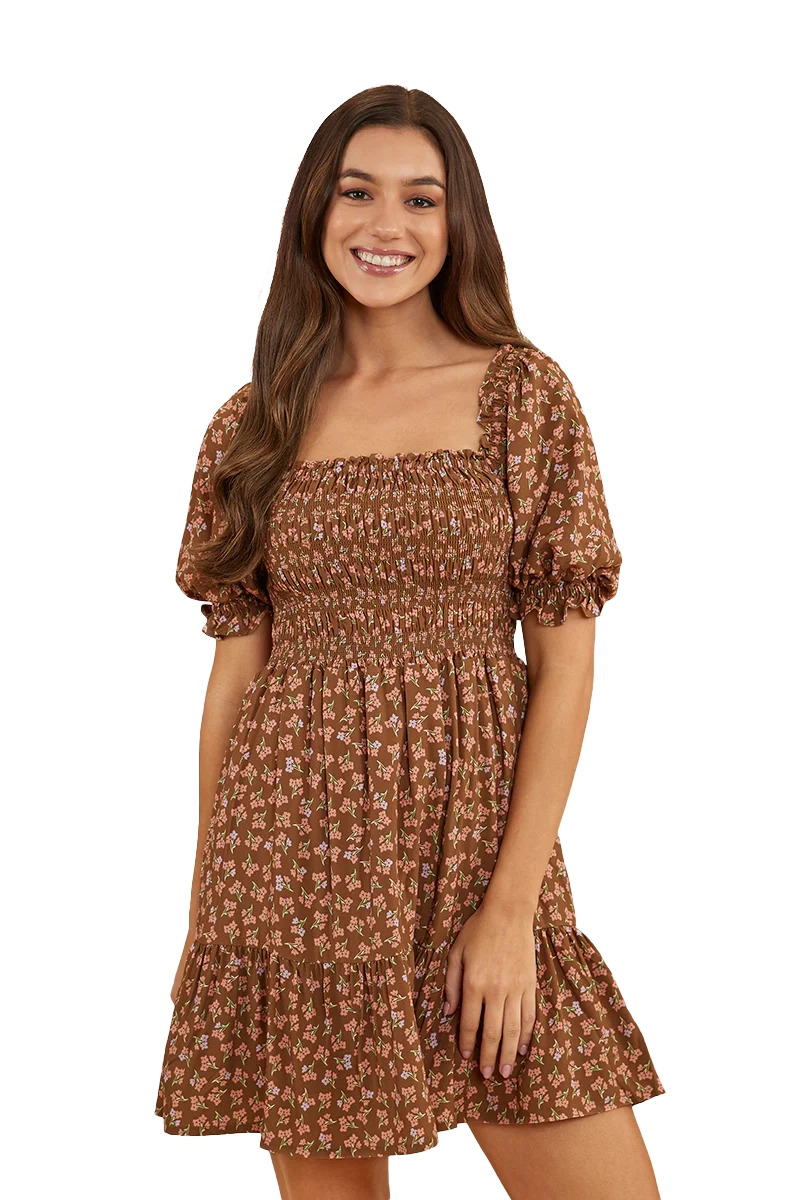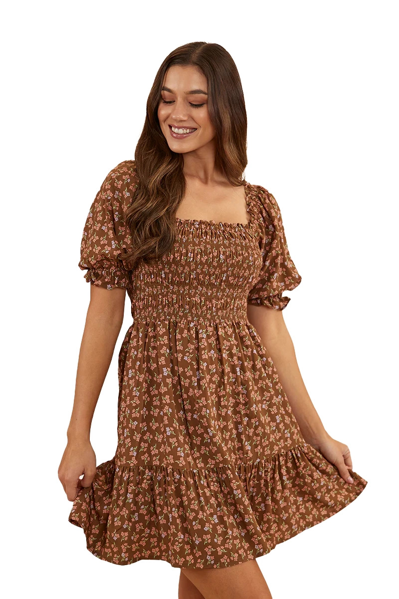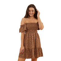 Ringers Western Womens Tahlia Shirred Mini Dress (222031RW) Toffee 8 [SD]