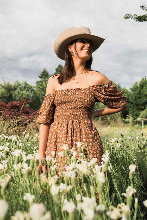 A sweet, charming, country number, Ringers' Tahlia is the perfect summer dress. (If you're looking for the perfect Little Black Dress, find it here.) Alluring and sweet all at once, the Tahlia mini dress features an intricate shirred bust panel and elasticated sleeves which can be worn on or off the shoulders. The flowing feel and the mini length give it a fun, flirtatious edge. Whether you're headed to dinner, a barn dance, or a sunny day out, Tahlia will be your perfect companion. Go classic country with the shoulders on and some cowboy boots, then step it up with the shoulders off and some strappy heels for your dinner date. Perfect!