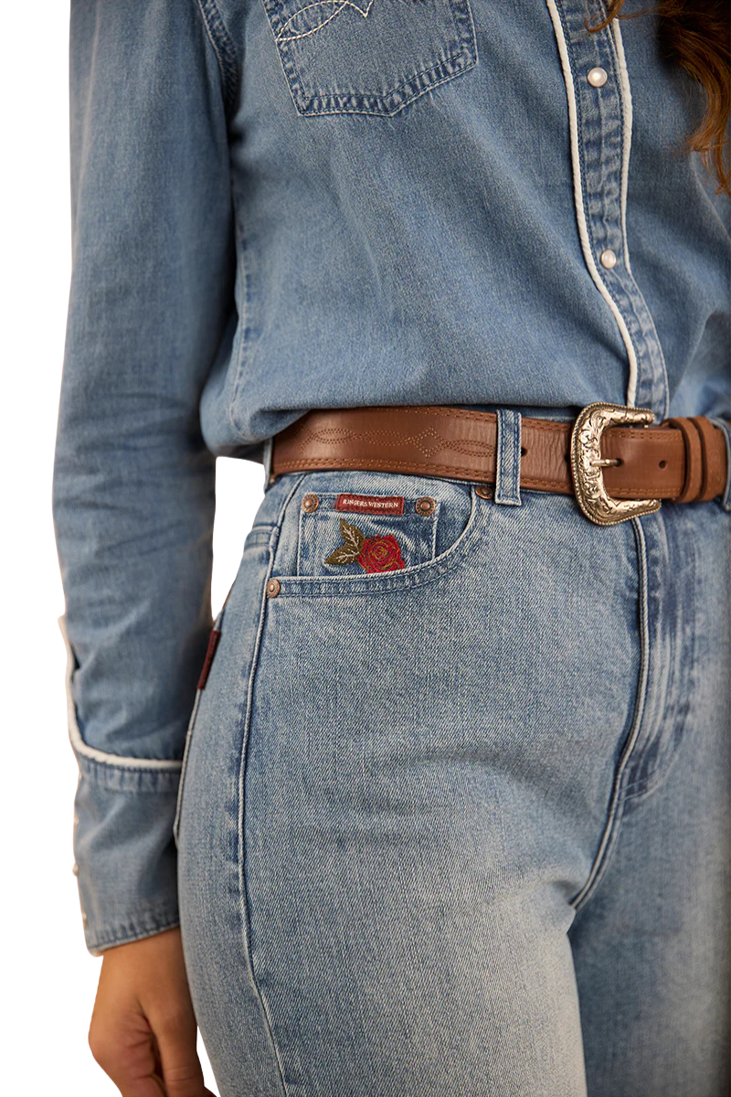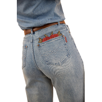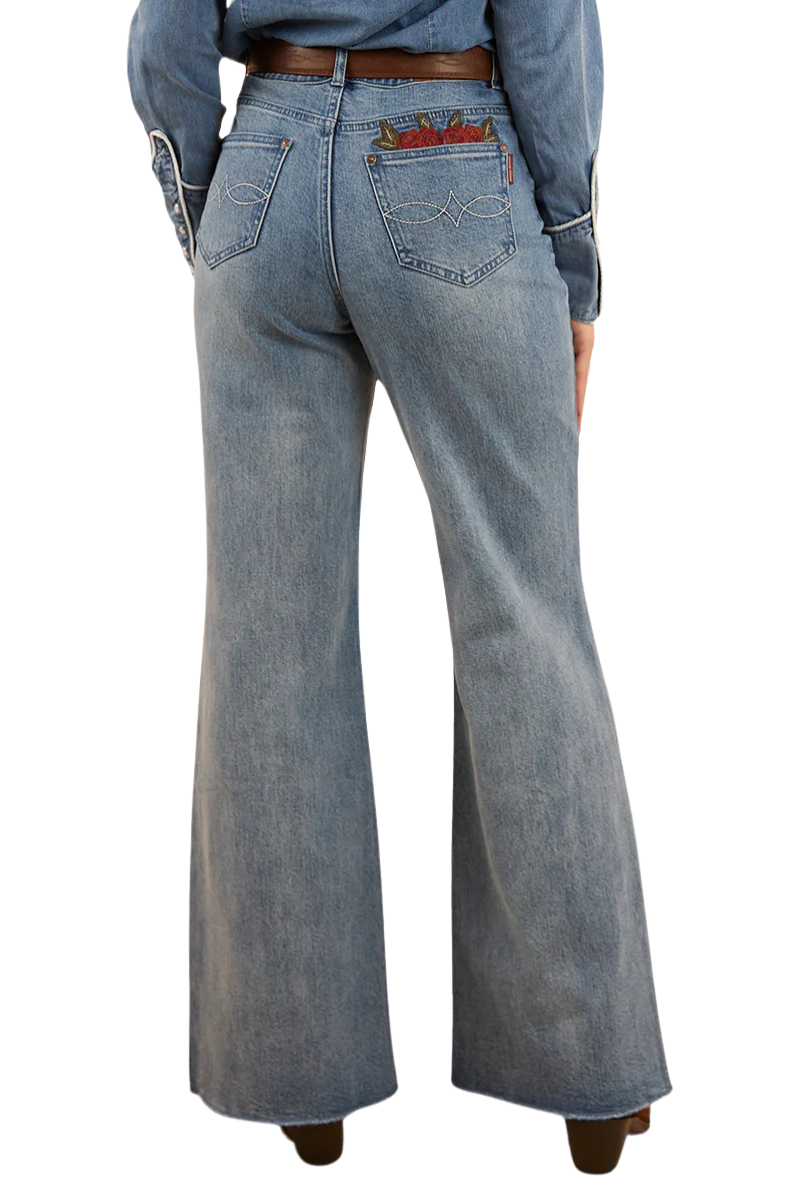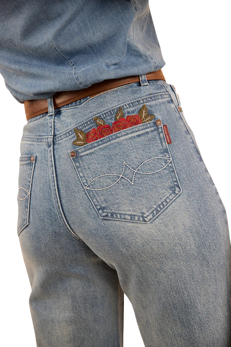 Visalia Rose features a high waist line, perfectly flattering the female form whilst elongating the legs. The super wide leg creates a relaxed, casual feel - giving these jeans a modern edge whilst being a practical and comfortable wardrobe staple. Intricate embroidery features on front and back pockets, elevating the design by adding a hint of country charm.