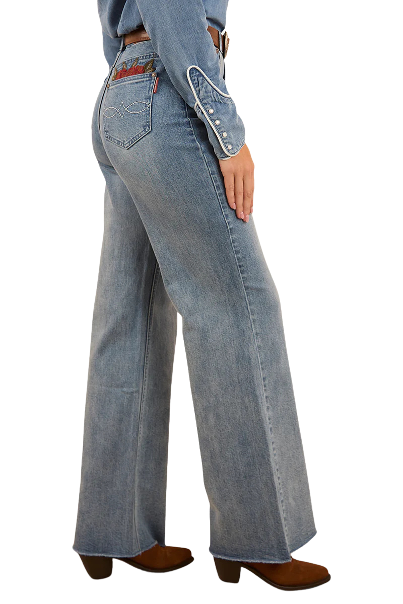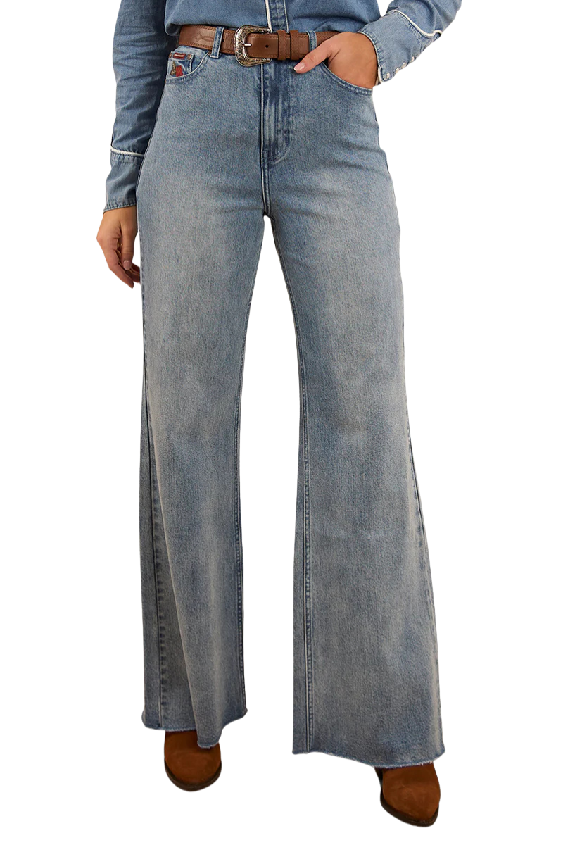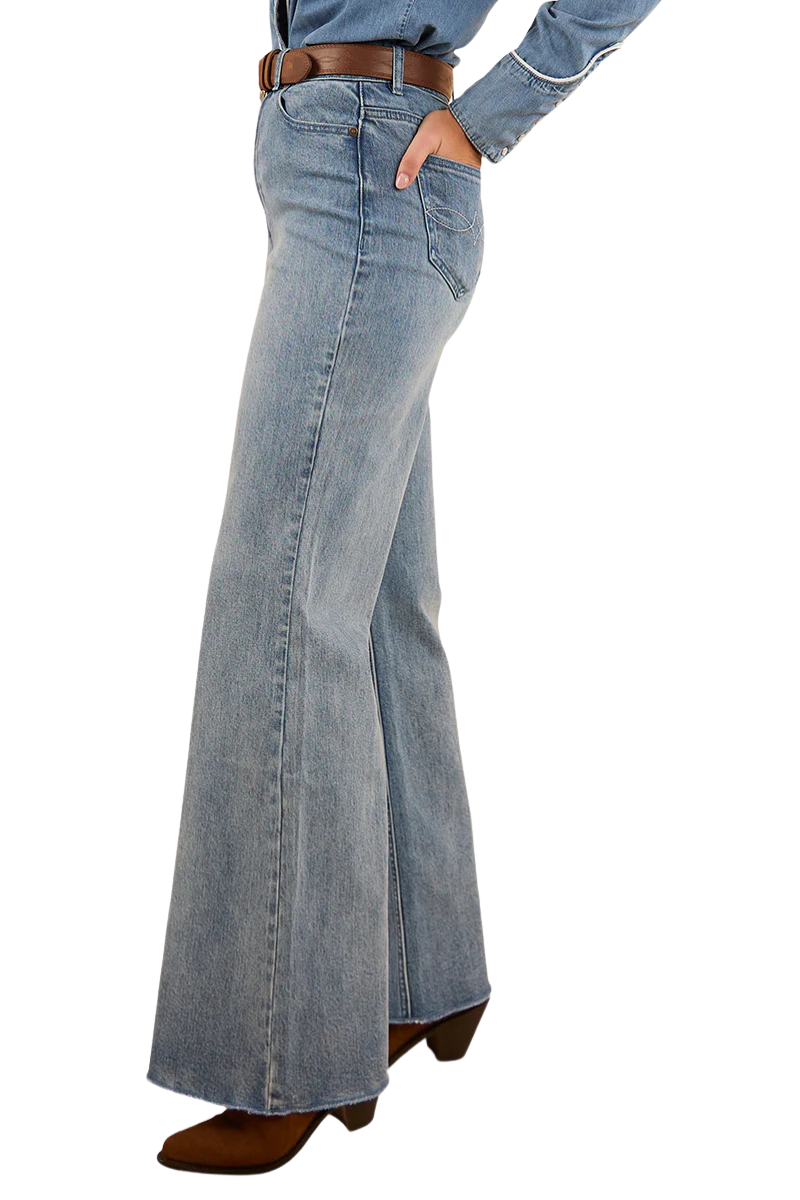 Ringers Western Womens Visalia Rose Wide Leg Jeans (223117RW) Light Wash Blue 12R