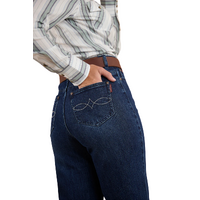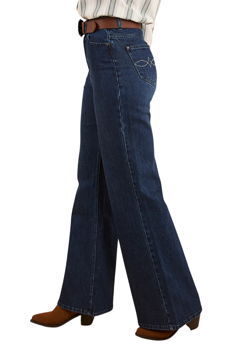Ringers Western Womens Visalia Wide Leg Jeans (223118RW) Dark Wash Blue 10R