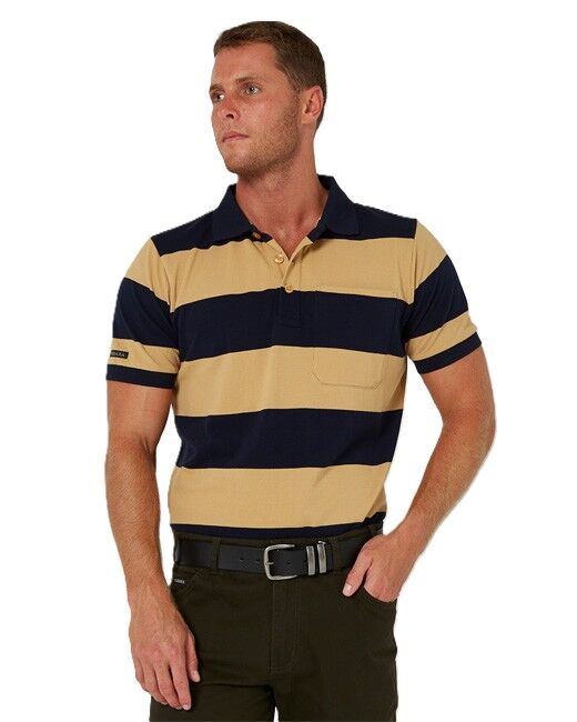 Ritemate Mens Pilbara Classic Cotton Polo (RMPC110) Golden Rough/French Navy S [SD]