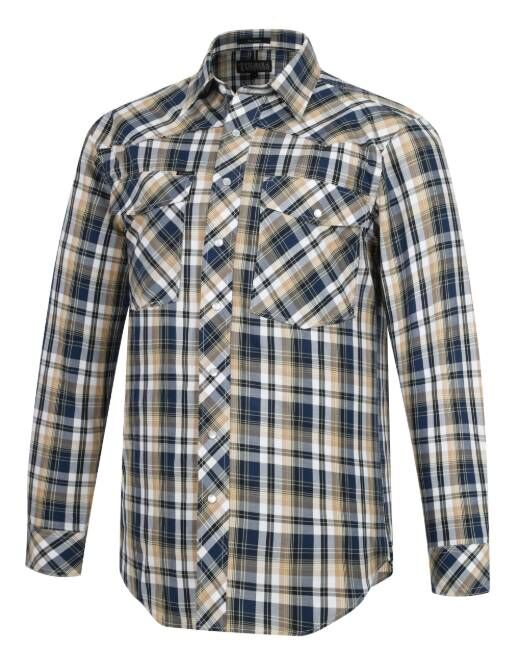 Ritemate Mens Pilbara Western Snap Button L/S Shirt (RMPW009) Brown/Navy/White S