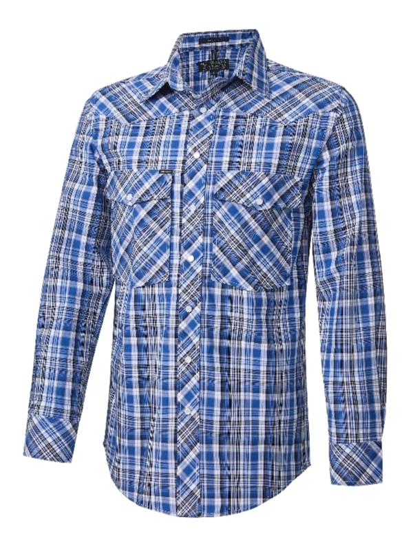 Ritemate Mens Pilbara Western Snap Button L/S Shirt (RMPW009) Blue/Black/White