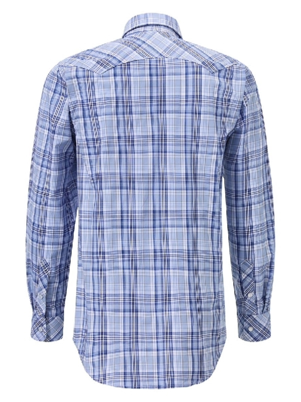 Men's Pearl Snap Button Long Sleeve Shirt, Ultra Fine Cotton, Yarn Dyed Check, Double Pocket, Classic Fit