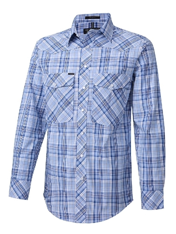 Ritemate Mens Pilbara Western Snap Button L/S Shirt (RMPW009) Blue/Navy/White