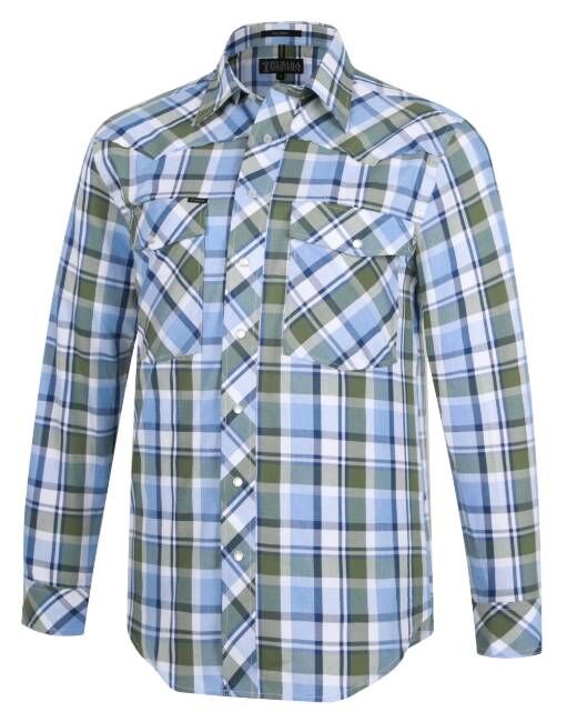 Ritemate Mens Pilbara Western Snap Button L/S Shirt (RMPW009) Green/Navy/White S