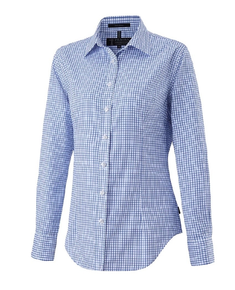 Ritemate Womens Pilbara Classic Fit Cotton L/S Shirt (RMPC115) Blue/White Check 14 [SD]