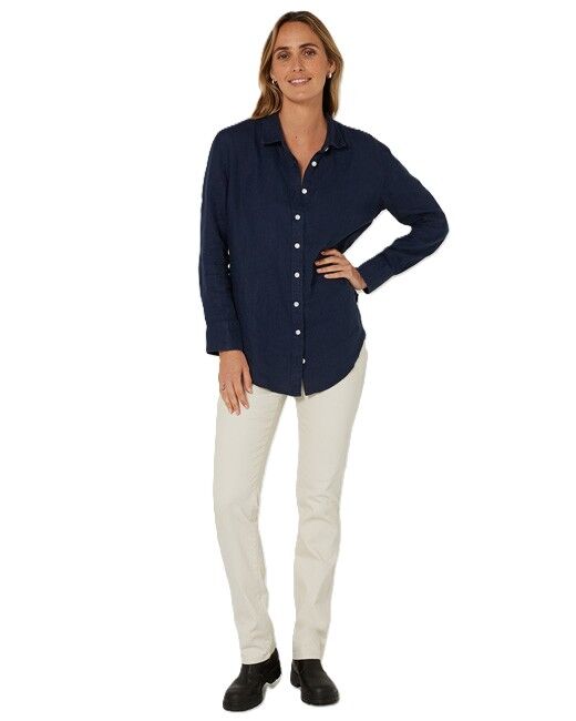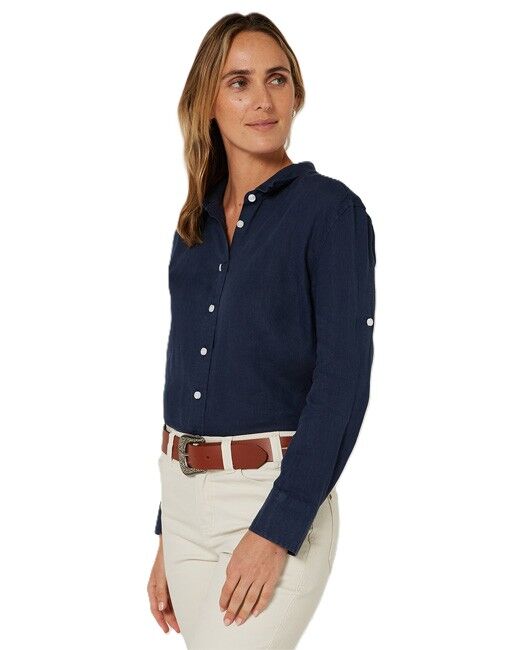 Ritemate Womens Pilbara Classic Fit Linen L/S Shirt (RMPC005) Navy 12 [SD]