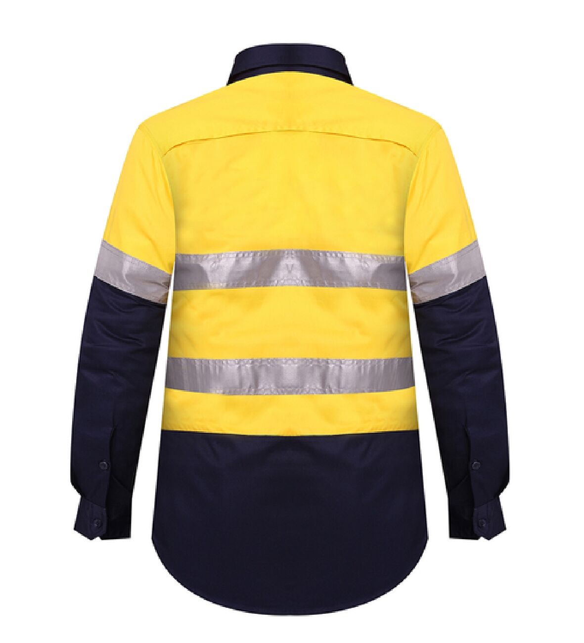 Ritemate Womens Two Tone Vented Closed Front L/S Work Shirt with Reflective Tape (RM208V2R) Yellow/Navy 8