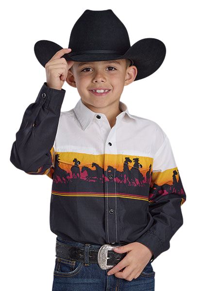 Roper Boys Vintage Collection L/S Shirt (30421219) Print Black S [SD]