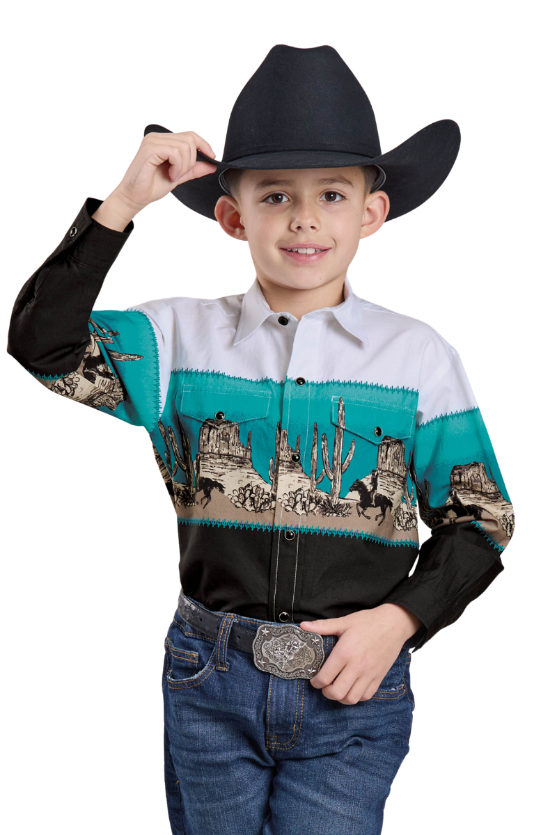 Roper Boys Vintage Collection L/S Shirt (30421701) Print Black XS [SD]