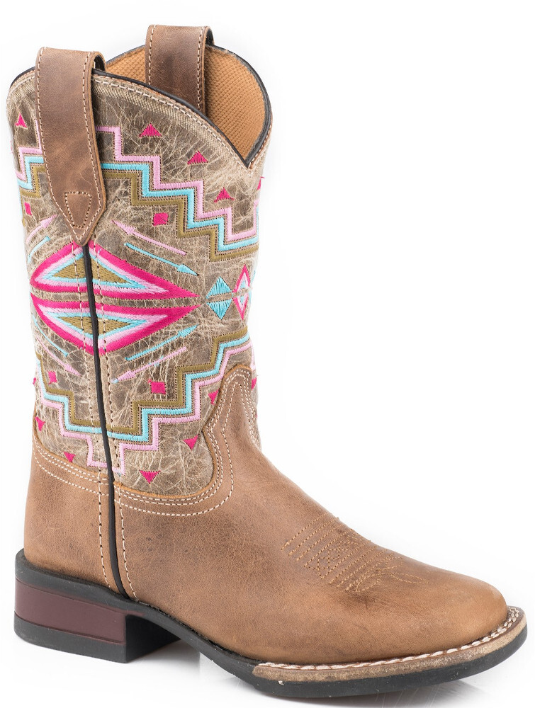 Roper Childrens Monterey Aztec Leather Western Boots (18912569) Tan 9