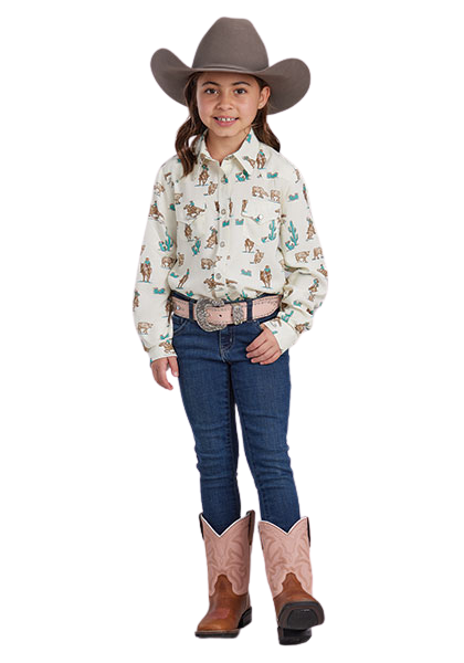 Roper Girls Five Star Collection L/S Shirt (80590100) Print White M [SD]