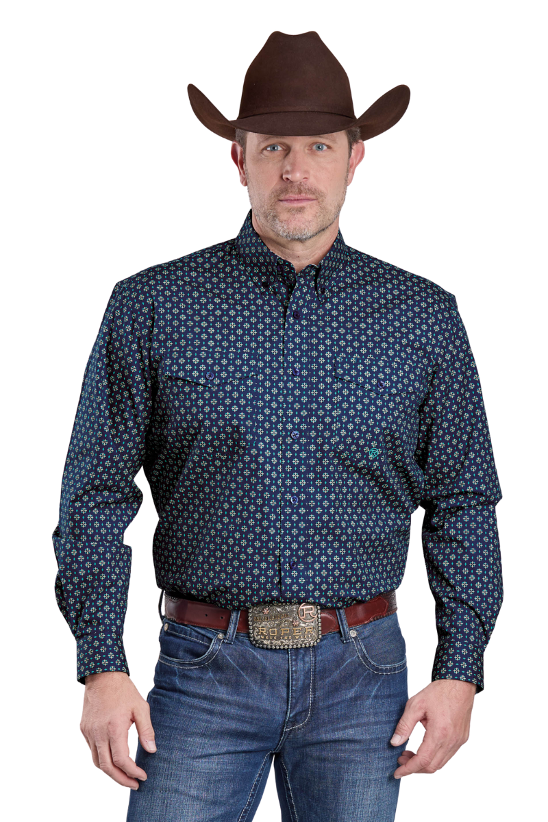 Roper Mens Amarillo Collection L/S Shirt (1325032) Print Blue L [SD]