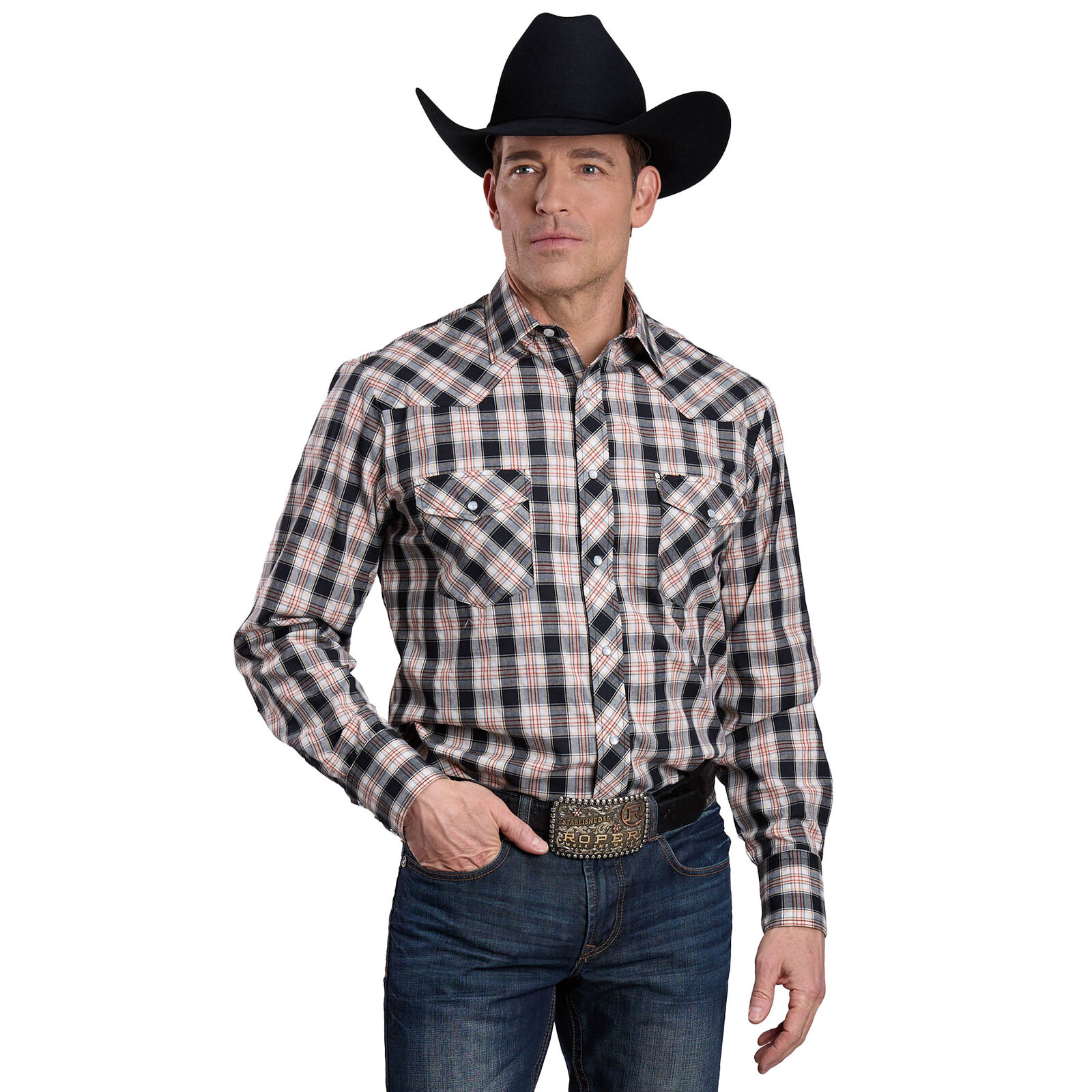 Roper Mens Karman Classic 55/45 Collection L/S Shirt (01101080) Plaid Black L [SD]