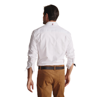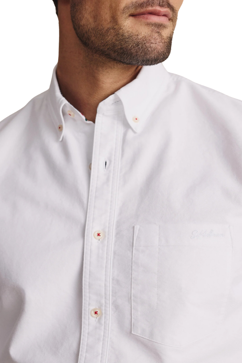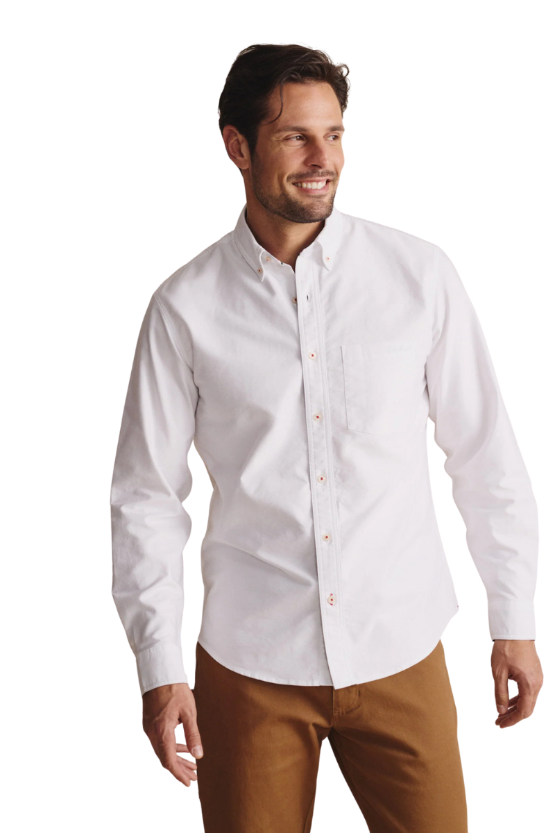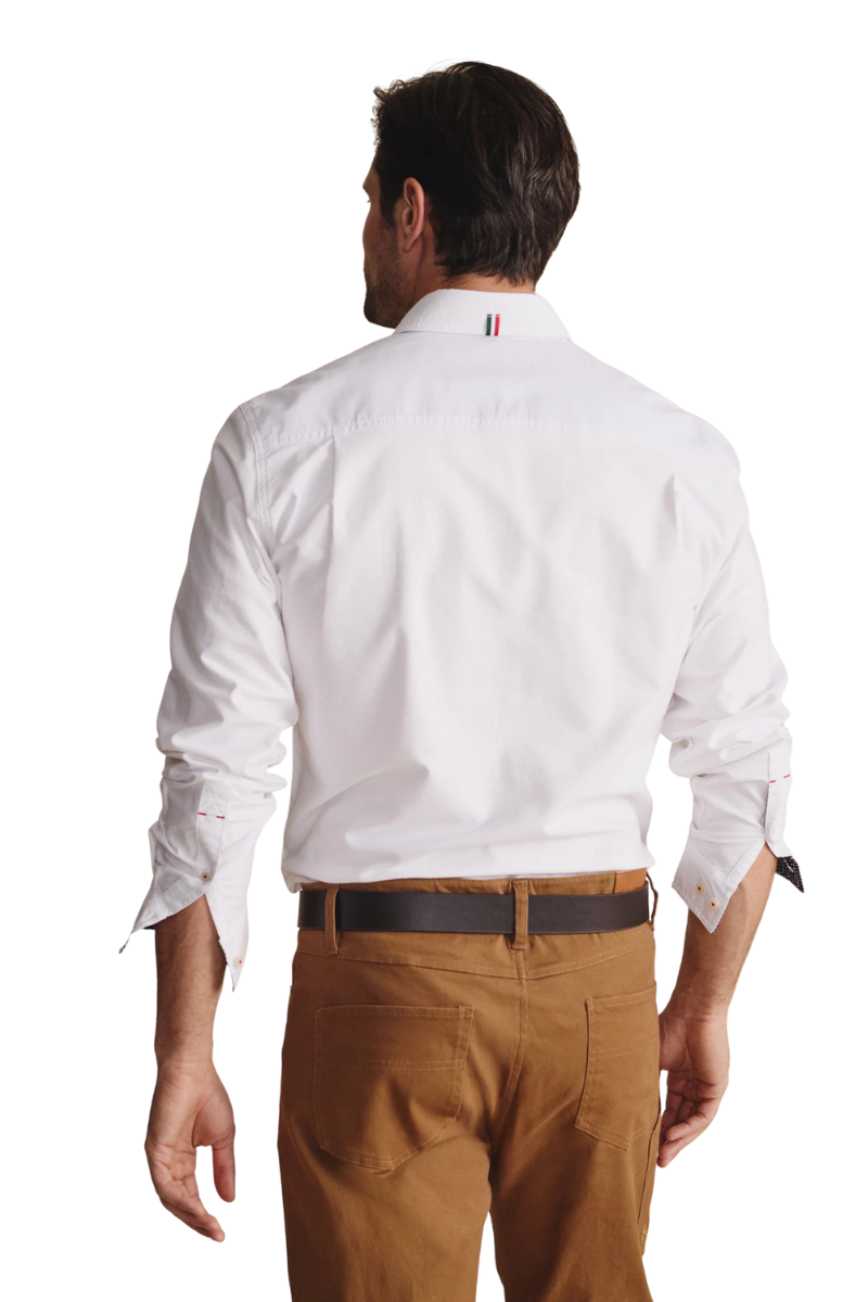 An absolute staple for any wardrobe, the effortlessly classic long-sleeve Aberdeen shirt in white combines superior comfort with a touch of refinement. Made from 100% Oxford cotton, this button-down shirt features our exclusive micro polka dot poplin trim, generous front pocket, and signature red S.Kidman detailing. Equally versatile, it pairs seamlessly with jeans for a laid-back look or a blazer for some smart-casual sophistication.