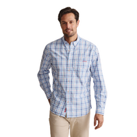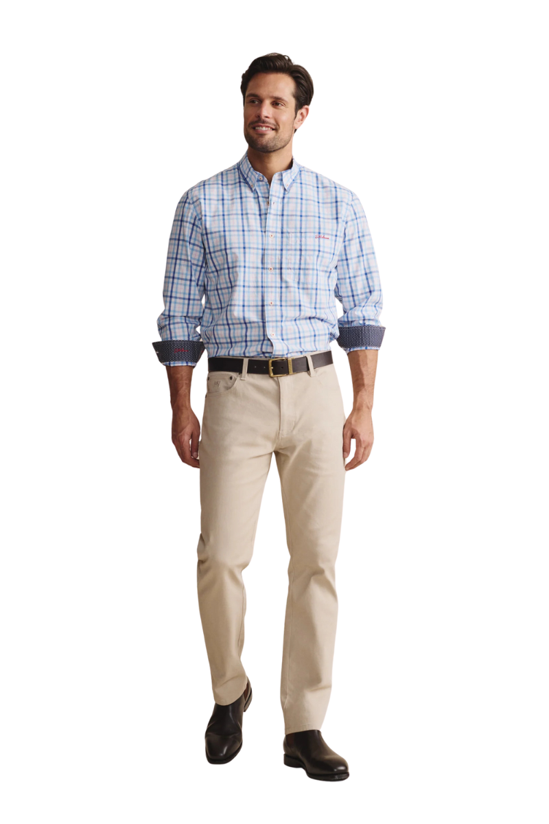 A true blue essential for everyday wear, the effortlessly classic long-sleeve Aberdeen shirt combines superior comfort with a touch of refinement. Made from 100% cotton poplin, this dress shirt features a lined chambray inside collar stand cuffs, back yoke and front placket, and signature red S.Kidman detailing. Equally versatile, it pairs seamlessly with jeans for a laid-back look or a blazer for some smart-casual sophistication.