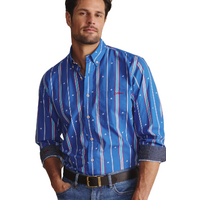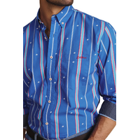 S.Kidman Mens Aberdeen Full Button L/S Print Shirt (1SHM00079) Mid Blue XS