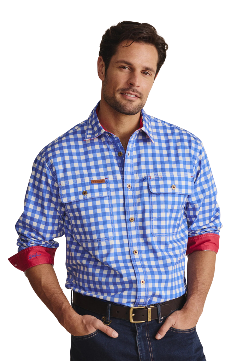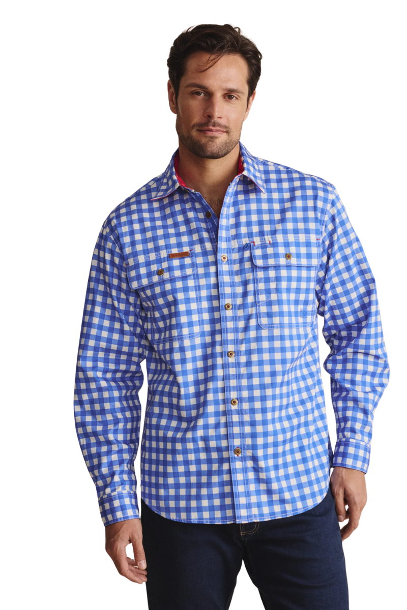 The Armstrong lightweight full placket shirt is for those who don’t shy away from anything, especially getting the job done. Stand out in this 100% lightweight cotton, UPF50+ work shirt. Reinforced double-stitched seams, extra-large front pockets, and a Herringbone-reinforced sleeve pocket keep essentials secure. underarm ventilation eyelets keep you cool, while heavy-duty metal buttons stitched in S.Kidman red ensure lasting strength. Finished with 100% cotton stripe tape reinforcements. It’s made to work as hard as you do.