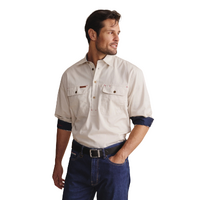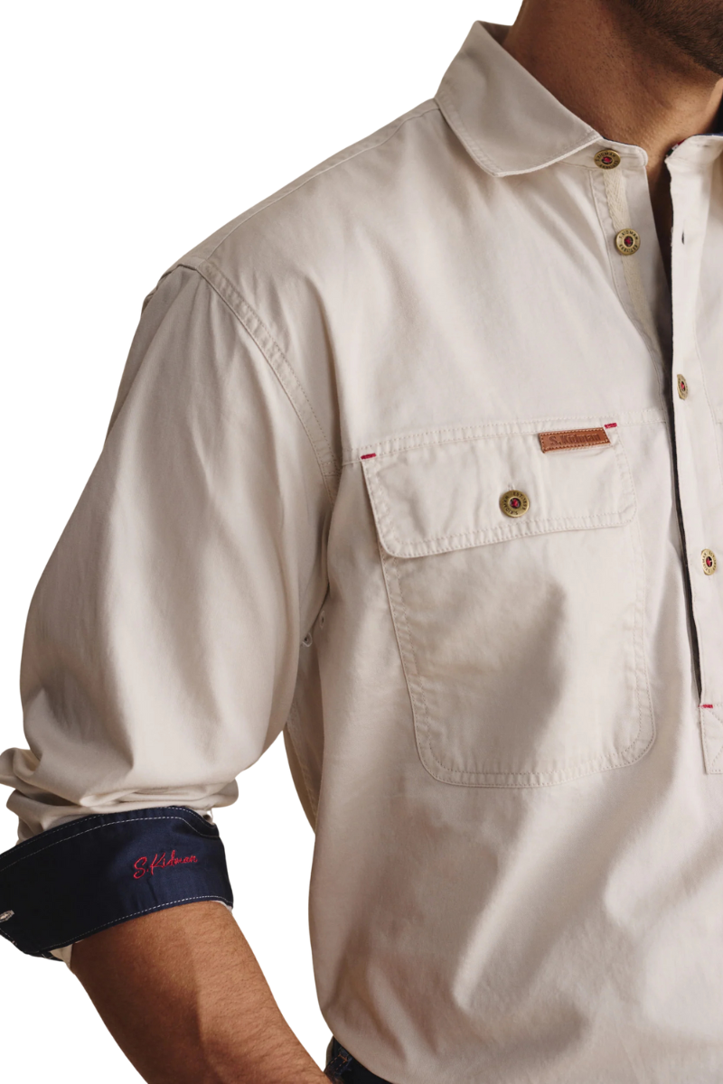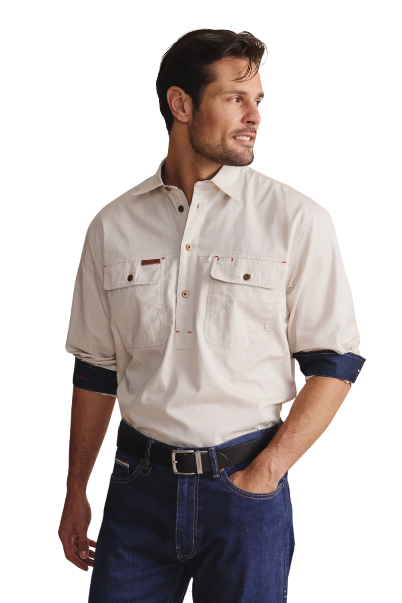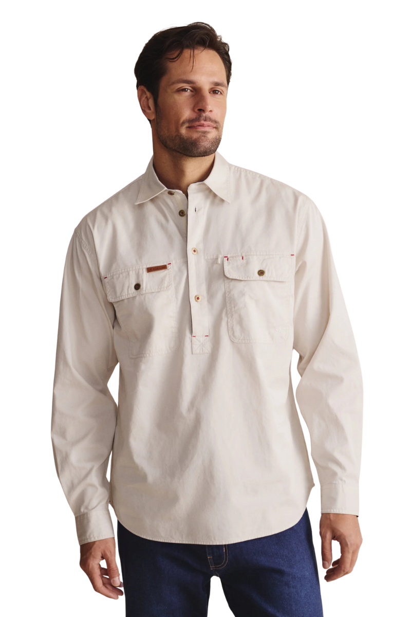S.Kidman Mens Brockman Half Button L/S Work Shirt (1SHM00131) Stone XS