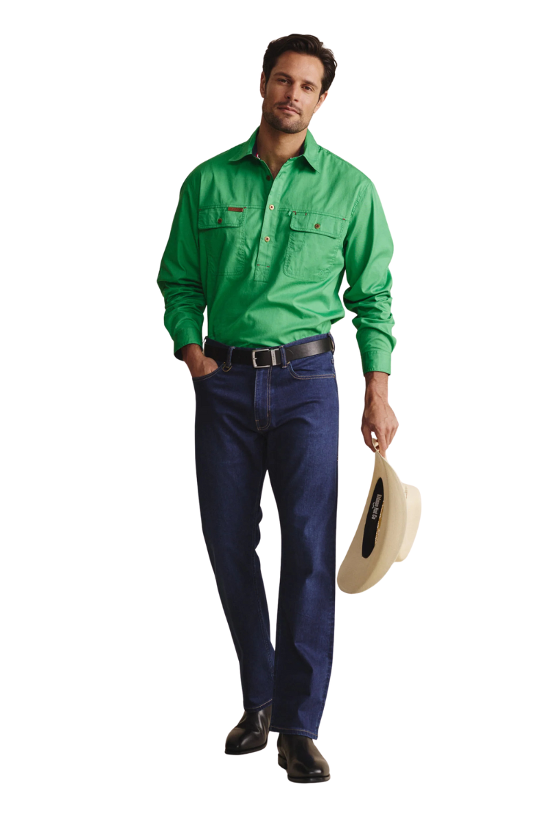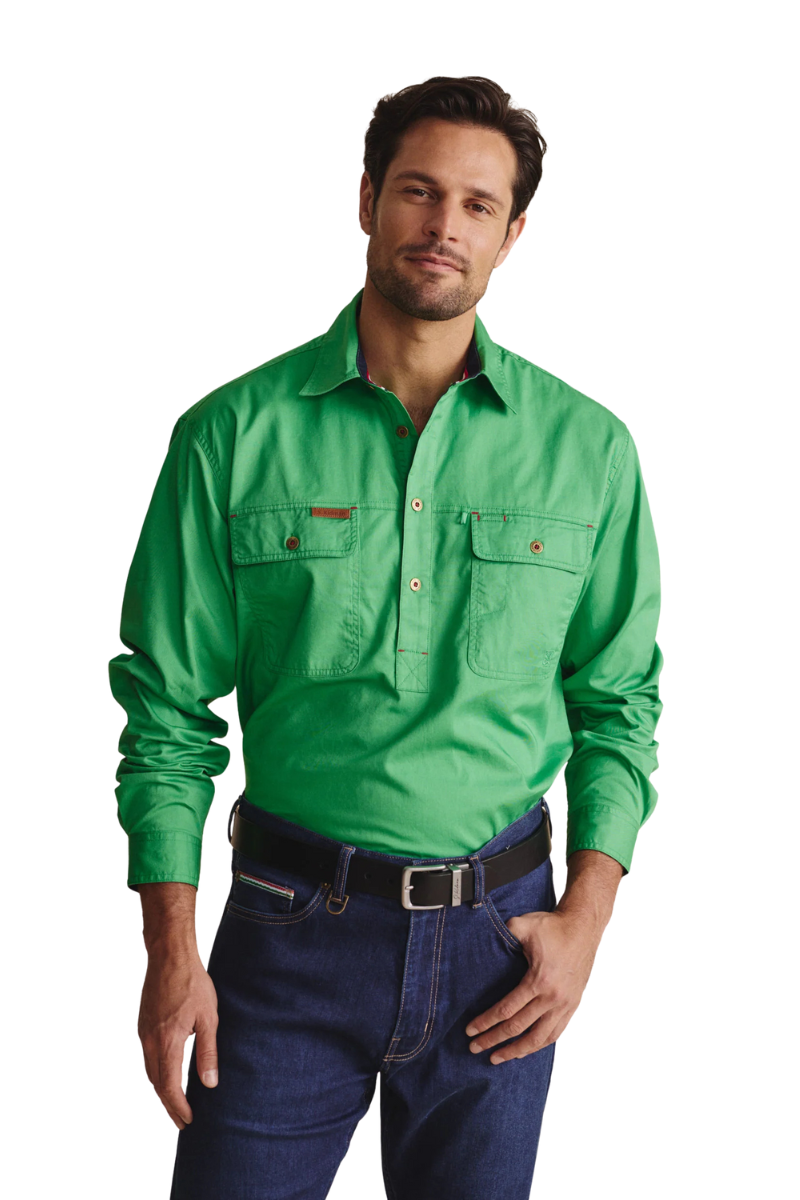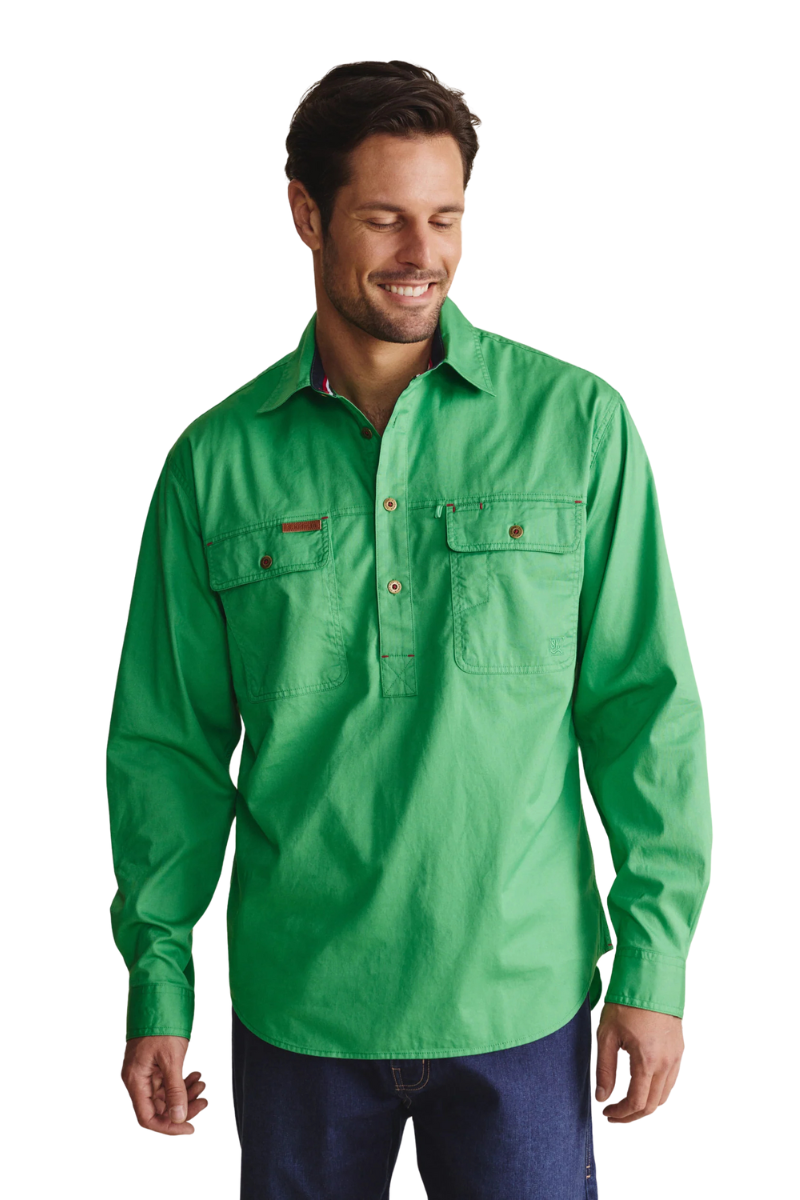 S.Kidman Mens Brockman Half Button L/S Work Shirt (1SHM00131) Green S
