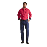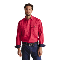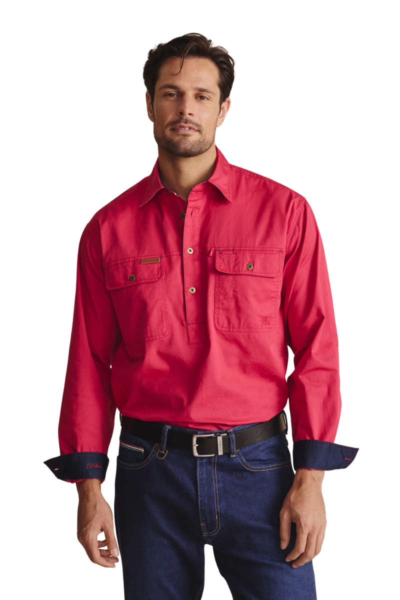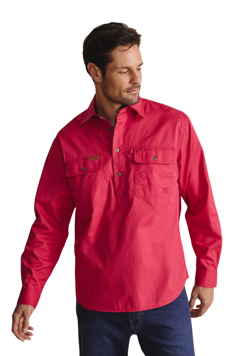 S.Kidman Mens Brockman Half Button L/S Work Shirt (1SHM00131) Red XS
