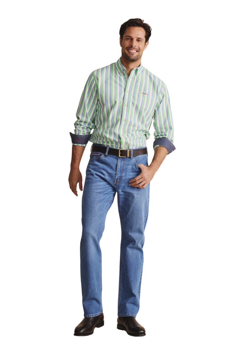 A bold statement in style and all-round wearability. The 100% cotton chambray Dexter candy stripe shirt stands out for all the right reasons. Designed with flex and comfort in mind, it features a pleated back yoke, longer tail and of course our exclusive micro polka dot poplin trim and signature red S.Kidman detailing. As shirts go, this one has a bit of go to it.