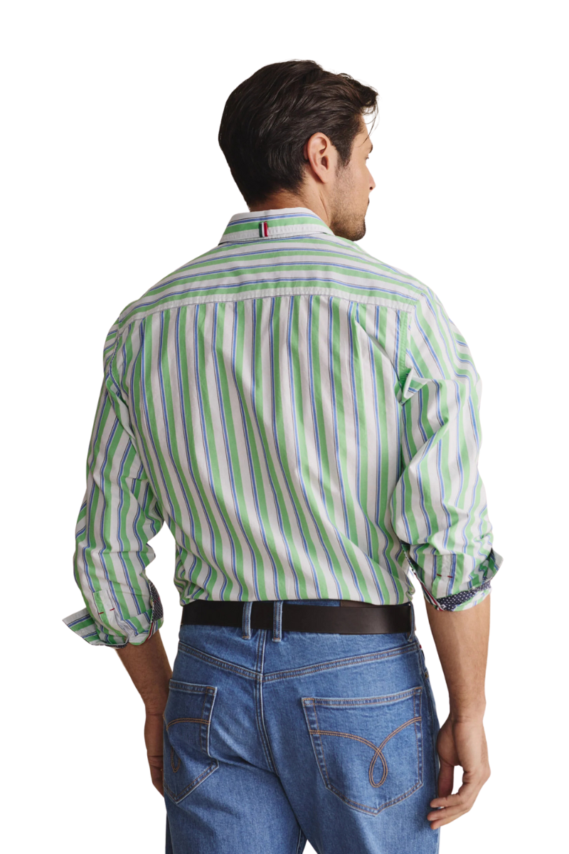 ✔100% cotton stripe tape reinforces back neck and cuff placket seams