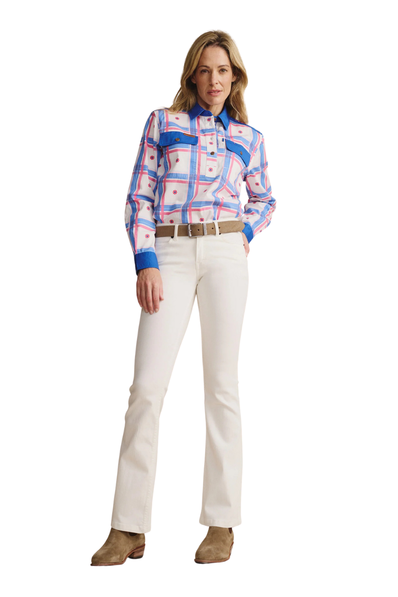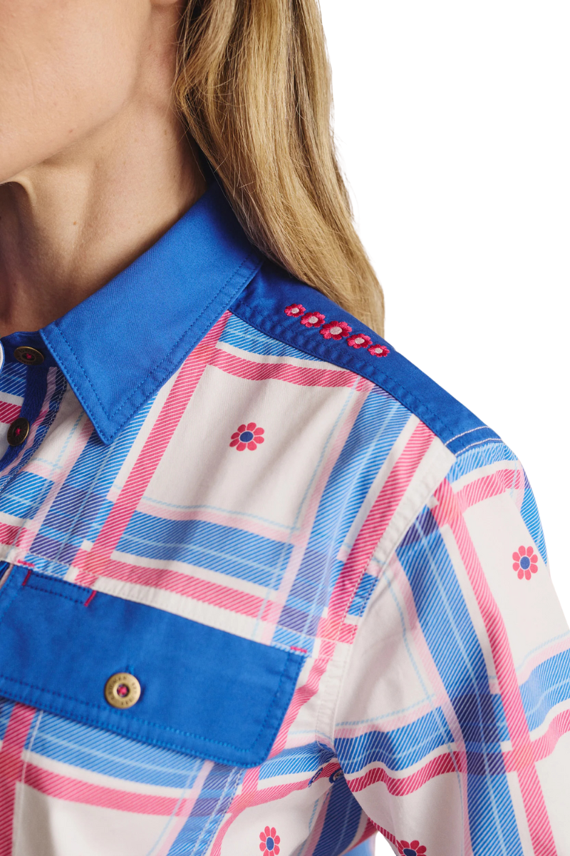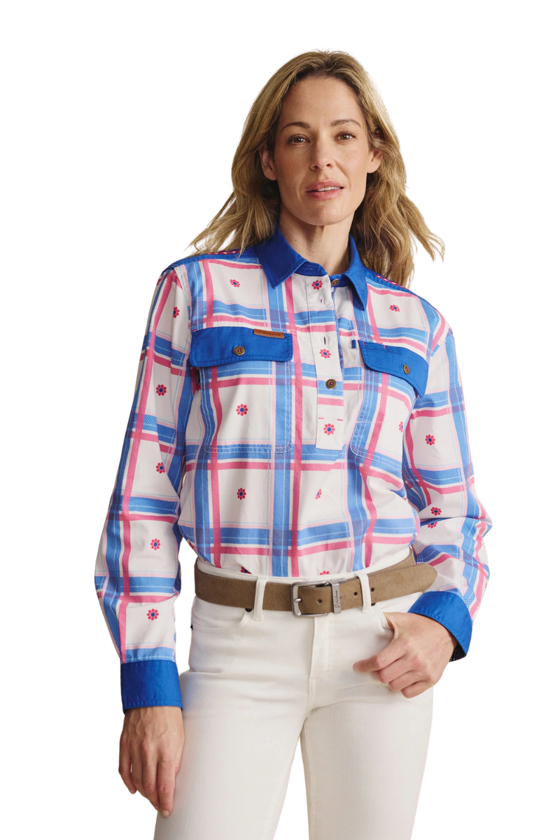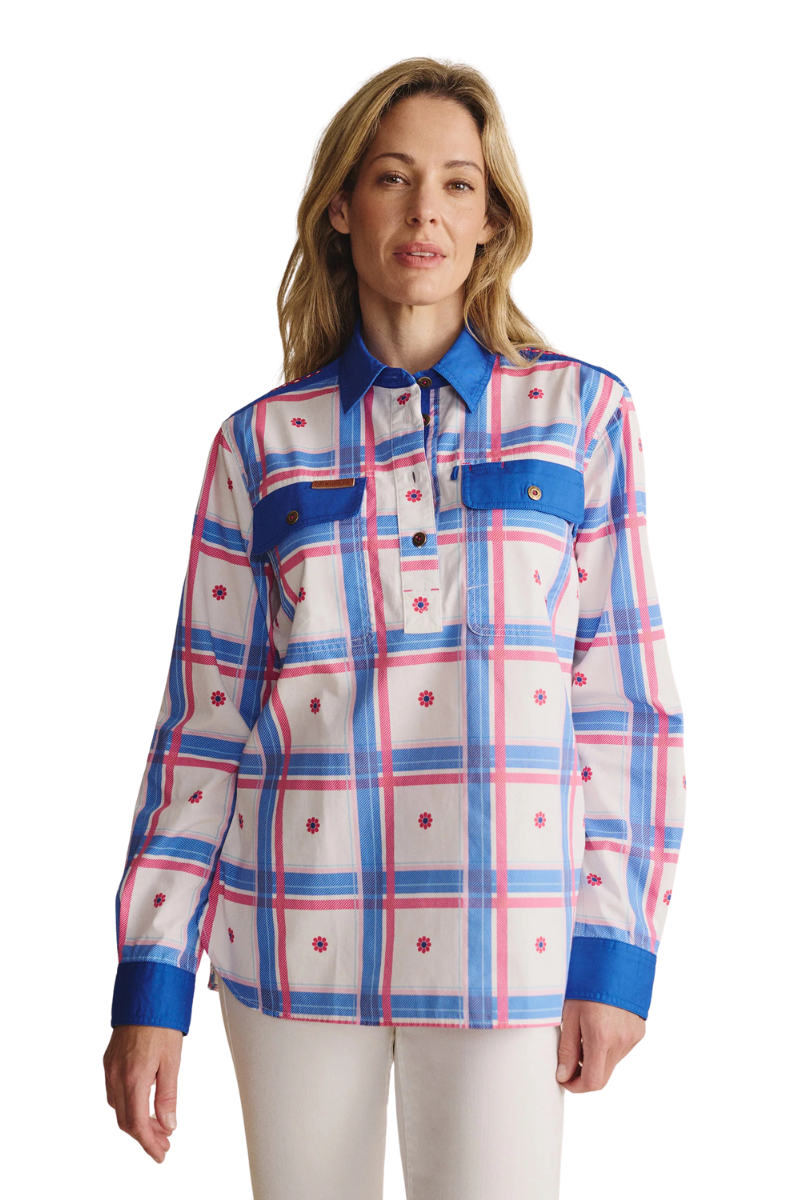 S.Kidman Womens Camfield Half Button L/S Print Shirt (1SHW00029) Mid Blue 6