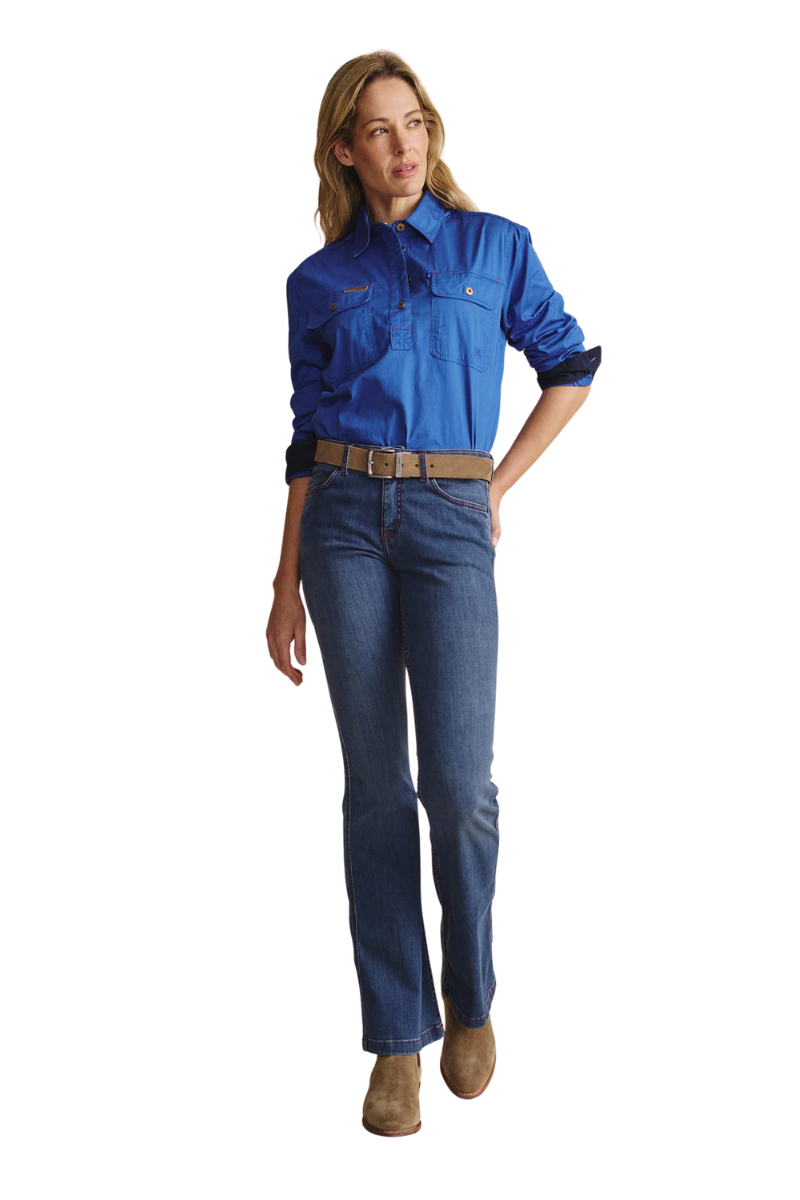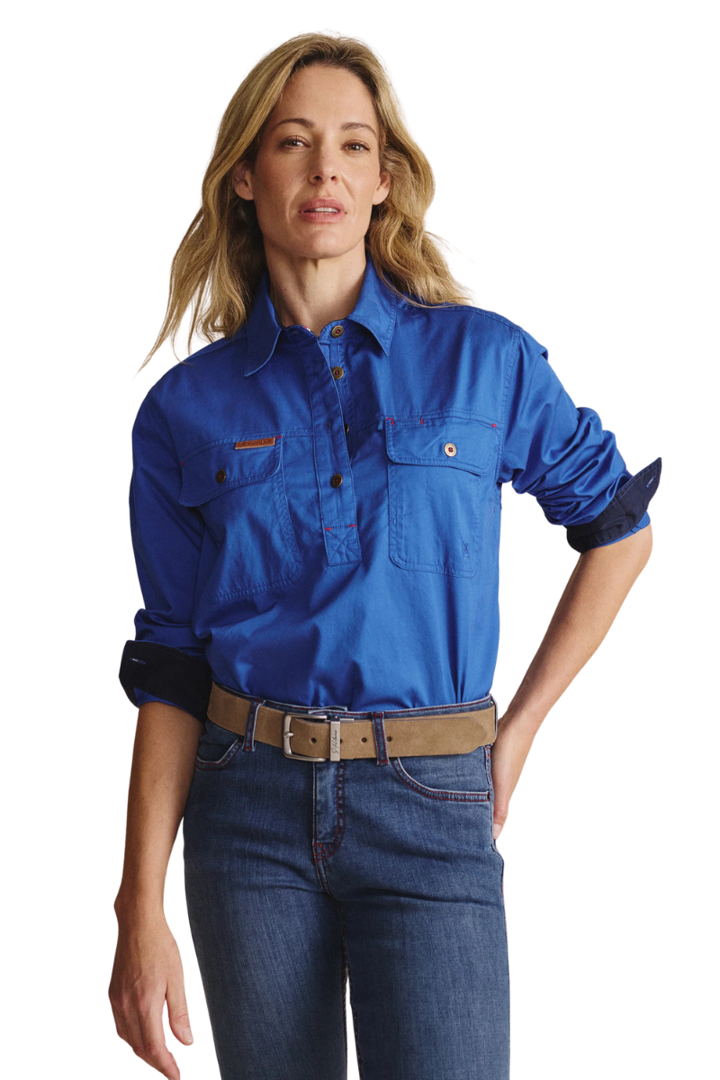 S.Kidman Womens Camfield Half Button L/S Work Shirt (1SHW00133) Mid Blue 6