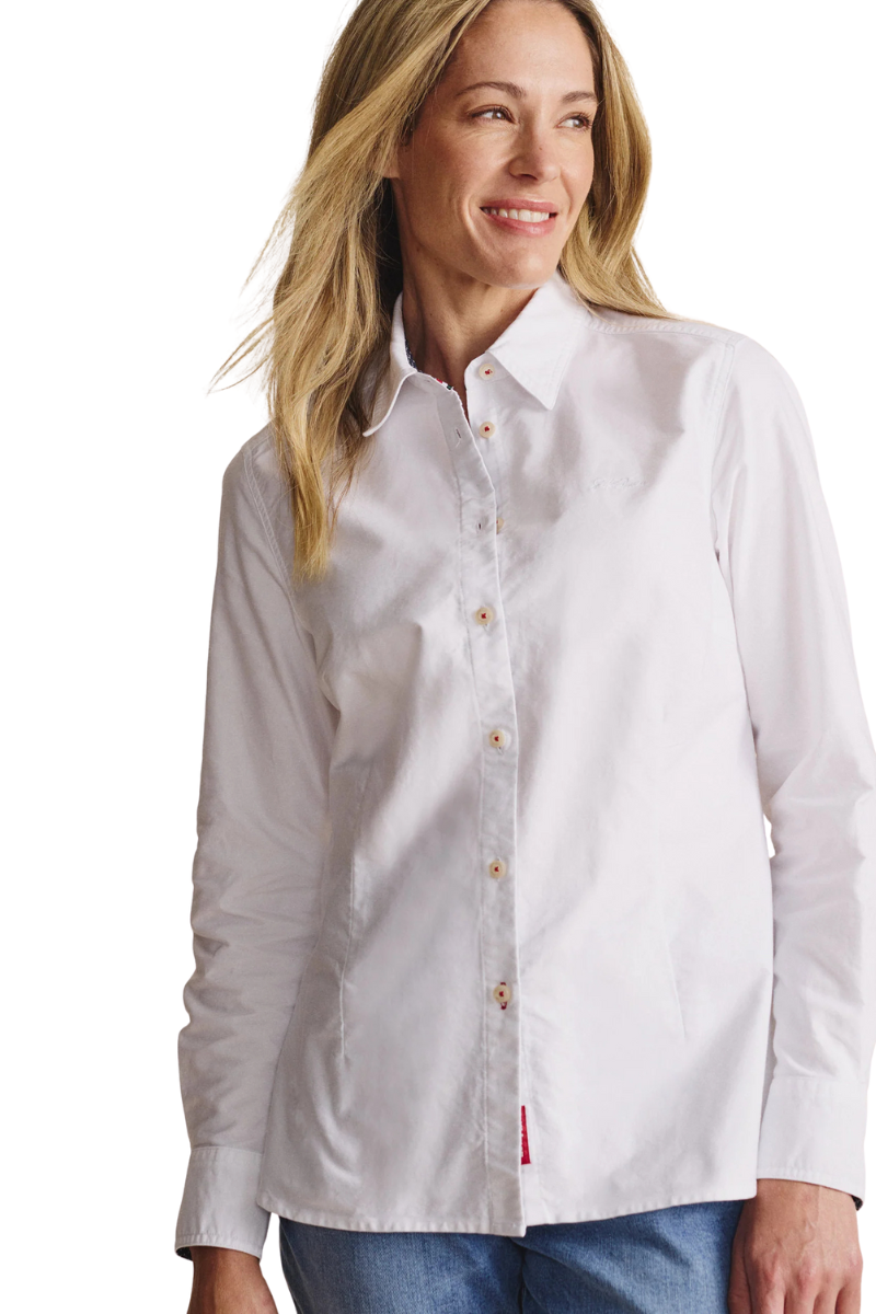 Crafted from 100% Oxford cotton and featuring a classic tailored fit, the Lennard shirt is a wardrobe essential. The collar stand, cuffs, and front placket are lined with our exclusive micro polka dot poplin, while signature S.Kidman red detailing adds a touch of distinction. Tuck it in for a polished office look or untucked for that effortlessly smart, yet casual feel.