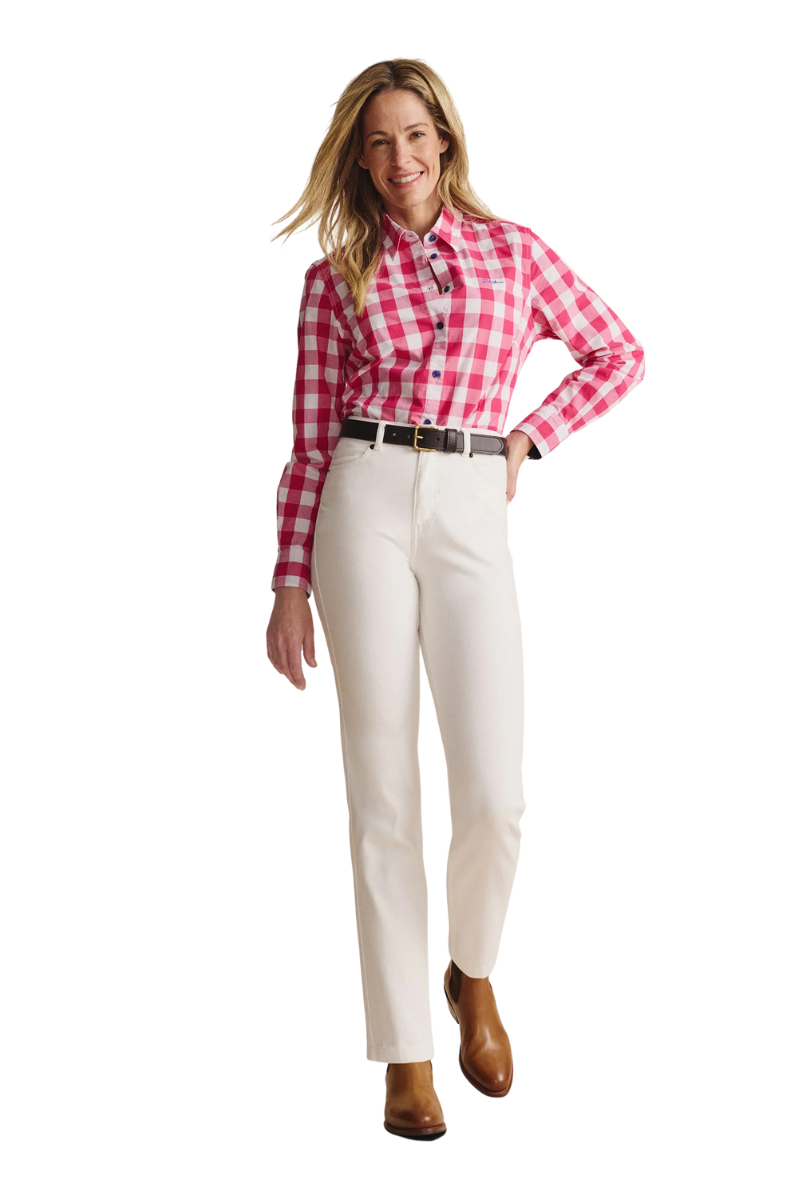 Stand out while you step out in classic, tailored comfort. Made from 100% Gingham cotton, the Redbank's iconic design pops with details like our exclusive micro polka dot poplin lining and signature S.Kidman red finishes. Tuck it in or wear it casually, the versatility of the Redbank adds a touch of country sophistication to any look.