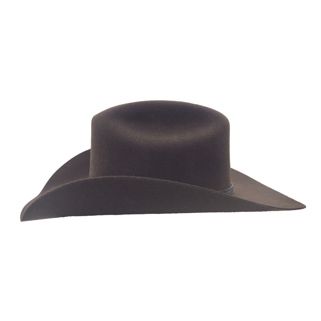 The Oregon Hat is constructed of Wool Felt and features a distinct pinch front crown and is finished with a silver accented leather hat band.
