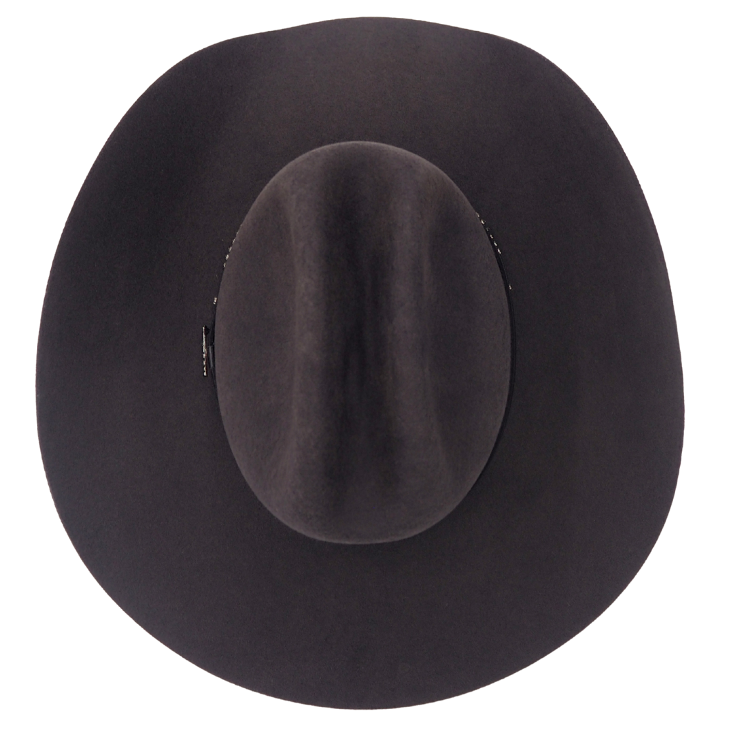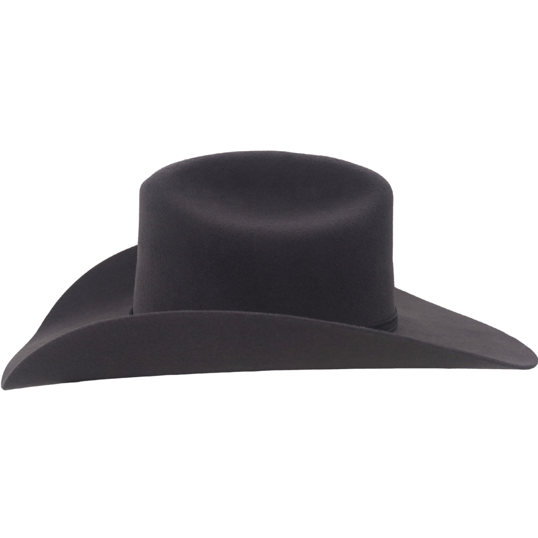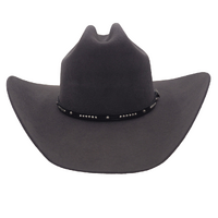 The Oregon Hat is constructed of Wool Felt and features a distinct pinch front crown and is finished with a silver accented leather hat band.