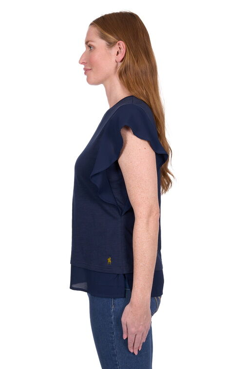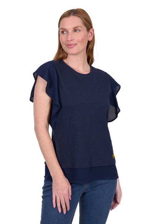 ✔ Soft woven fabric on flutter sleeves and hem