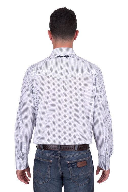 Wrangler Mens Brent Logo L/S Shirt (X5S1111363) White/Navy XXL [SD]