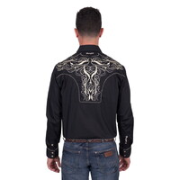✔ Classic western long sleeve shirt with original hand drawn embroidered front and back yokes