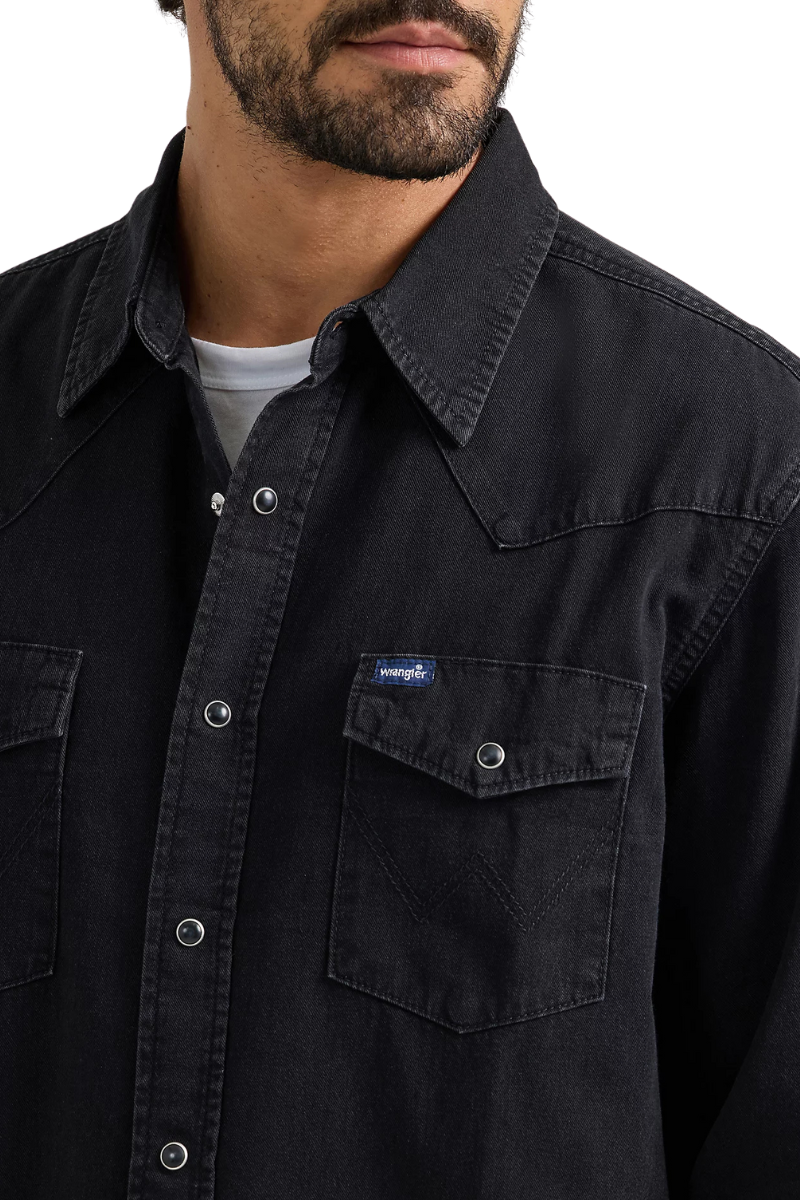 Wrangler Mens Classic Fit L/S Denim Shirt (112361702) Black Denim S