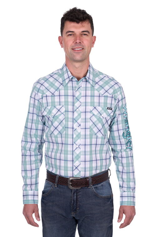 Wrangler Mens Jacob Logo L/S Shirt (X5S1111364) Green/White M [SD]