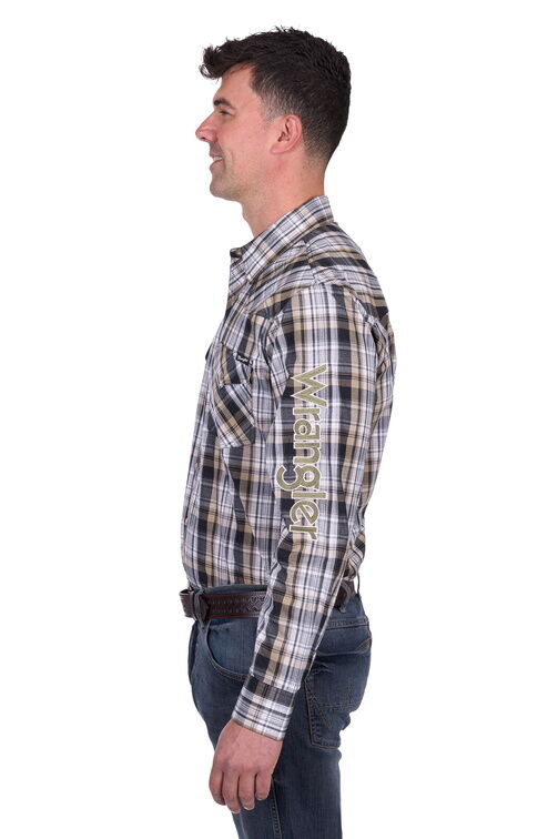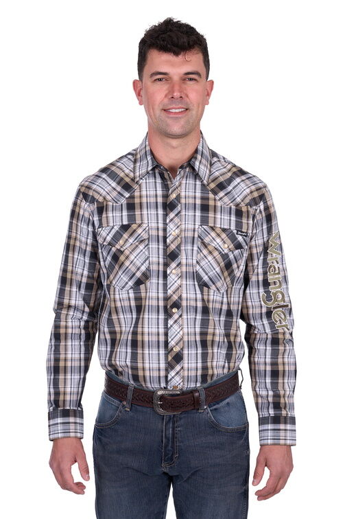 Wrangler Mens Joel Logo L/S Shirt (X5S1111361) Black/Tan M [SD]
